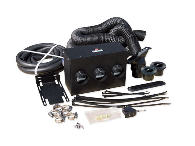 This U.S. made Universal Heater Kit offers peak performance for the DIYer, generating up to 160 CFM and a maximum of 22,000 BTU's for reliable warmth. The heater kit includes three 2" outlet heater, 3 louvers, 18' of 2" vent hose, 10' of 5/8 heater hose, 2 1"x1"x5/8" tee's, stainless steel clamps, 7' of wire harness with fuse, and all necessary hardware for installation.